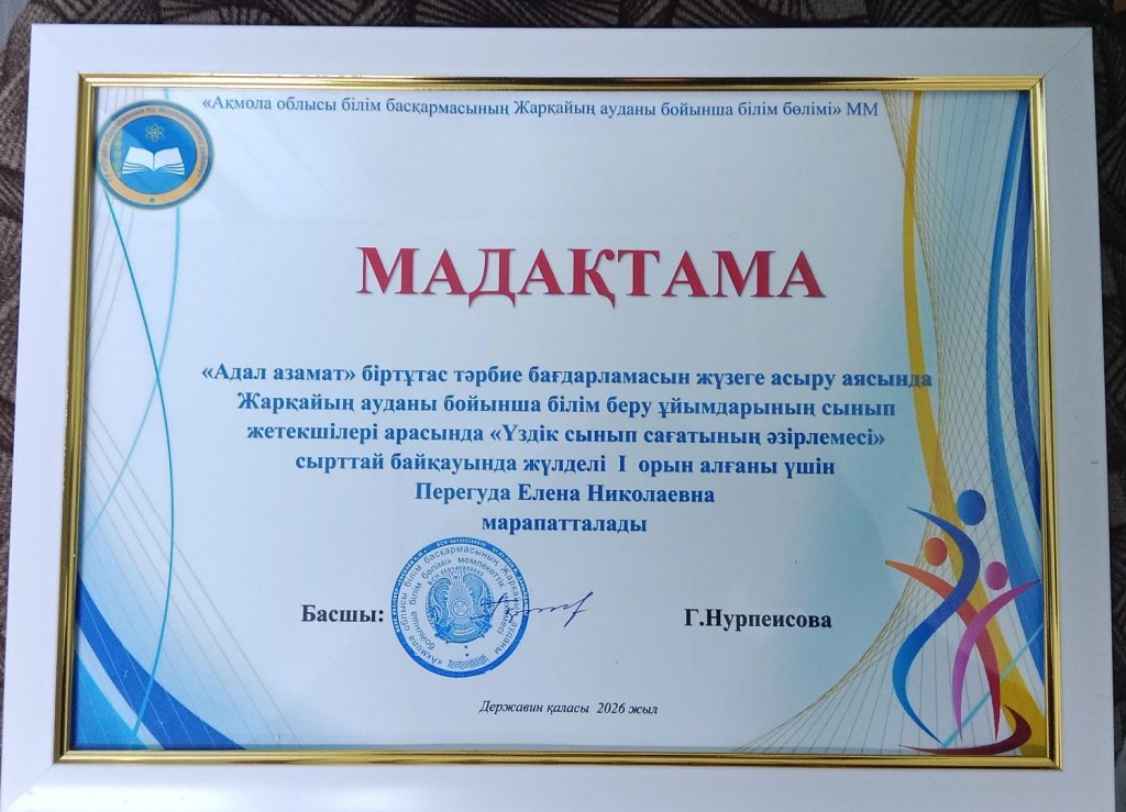 «Адал азамат» біртұтас тәрбие бағдарламасын жүзеге асыру аясында Жарқайың ауданы бойынша білім беру ұйымдарының сынып жетекшілері арасында «Үздік сынып сағатының әзірлемесі» тақырыбында сырттай байқау өткізілді.