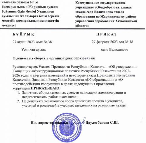 Коммунальное государственное учреждение «Общеобразовательная школа села Валиханово отдела образования по Жаркаинскому району управления образования Акмолинской области»